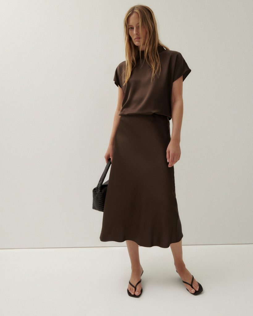 Materijali su prirodni i lagani: pamuk, prozračne lanene mješavine, pletenina bez rukava i meko padajuće tkanine. Čokoladno smeđa isprepliće se s bež i bijelim tonovima. Siluete se otvaraju – funkcionalni prsluci, lagani kaputi, široke hlače ravnog kroja, opušteni kompleti te jeans.